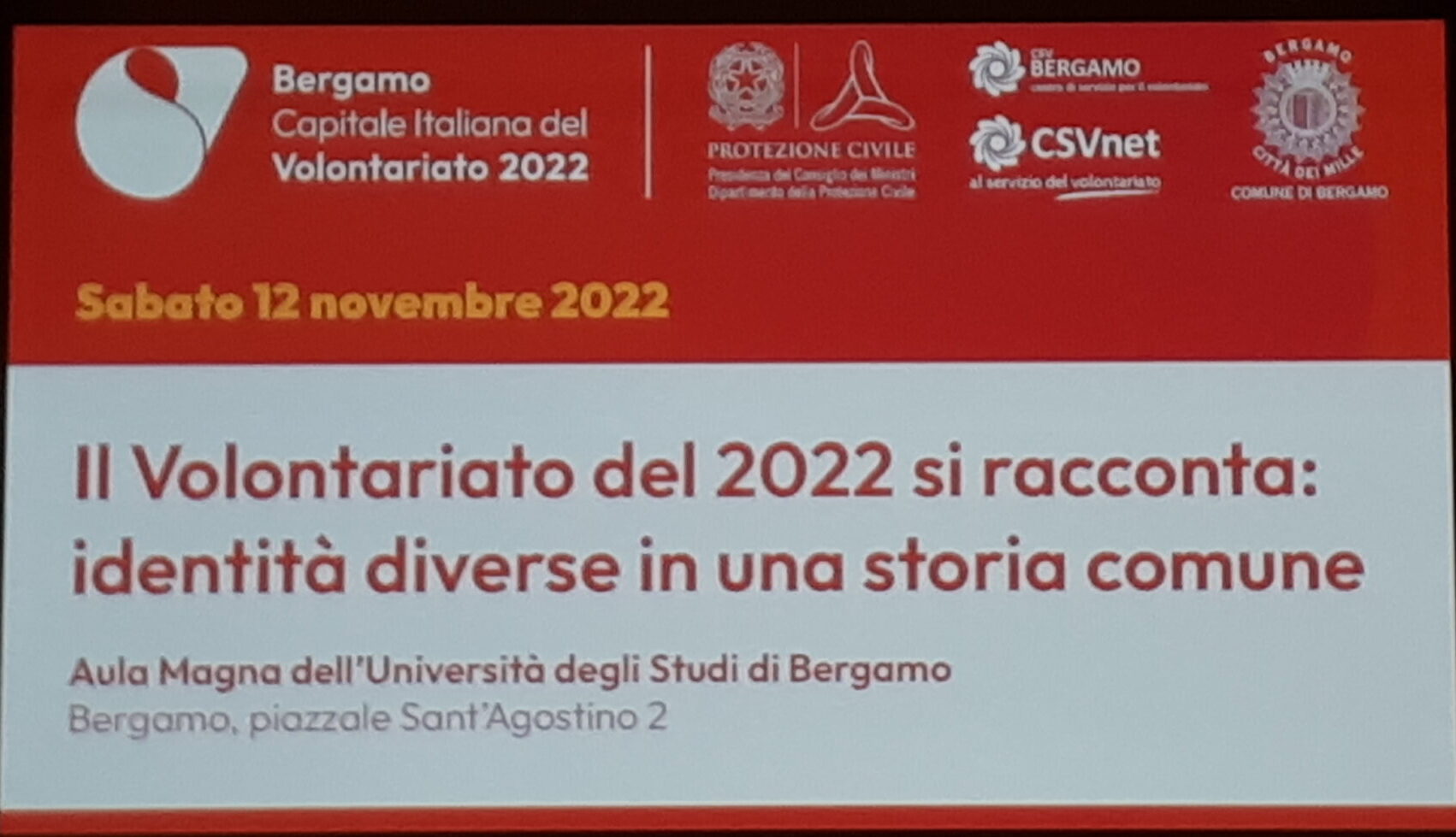 Bergamo capitale italiana del volontariato 12 novembre 2022