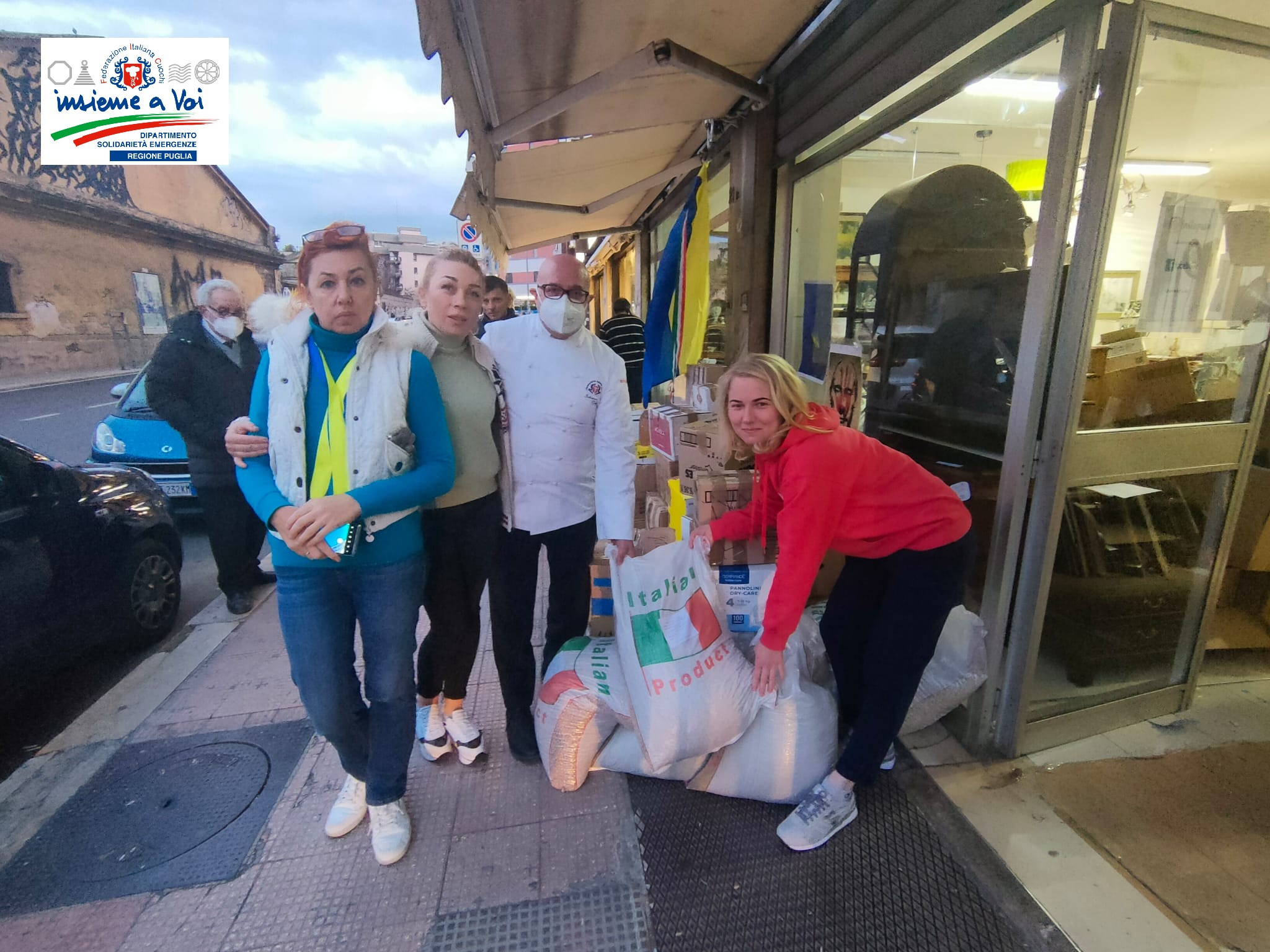 4 marzo 2022: il DSE FIC Puglia grazie al grande supporto dell’U.R.C.P. , dell’associazione cuochi Baresi, dell’associazione cuochi BAT, si è riusciti a prendere e donare a Bari al centro di raccolta dell’associazione Italo Ucraina di Puglia 5 quintali di viveri di prima necessità, kg.70 di legumi secchi vari, medicine e attrezzature di primo soccorso, che saranno donate ai profughi Ucraini arrivati in Polonia.