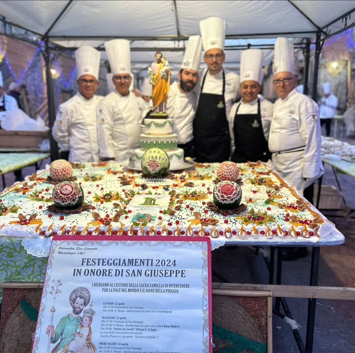 Il 23 Aprile il DSEFIC Sicilia in collaborazione con Associazione Provinciale Cuochi e Pasticceri di Agrigento e il Pastry chef Giovanni Mangione, hanno realizzato una Maxi torta di circa 150 kg per la festa di San Giuseppe a Montallegro (Ag), fatta con ricotta fresca di pecora, Pan di spagna alla vaniglia, bagna al maraschino e tanta frutta candita.