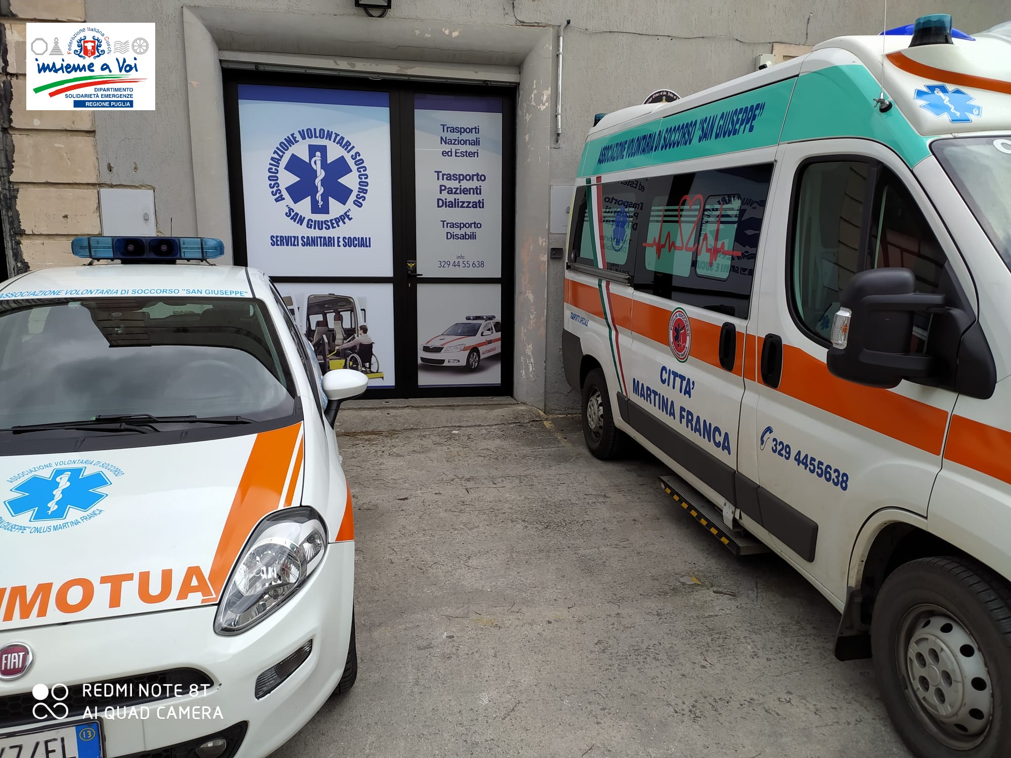 L’Associazione Volontari Soccorso “San Giuseppe” svolge l’attività di TRASPORTO MALATI e/o INFERMI – DIMISSIONI OSPEDALIERE – TRASFERIMENTI SANITARI in tutto il territorio italiano e di TRASPORTO TOTALMENTE GRATUITO DI PAZIENTI IN TRATTAMENTO EMODIALITICO su tutto il territorio della provincia di TARANTO e BARI.
